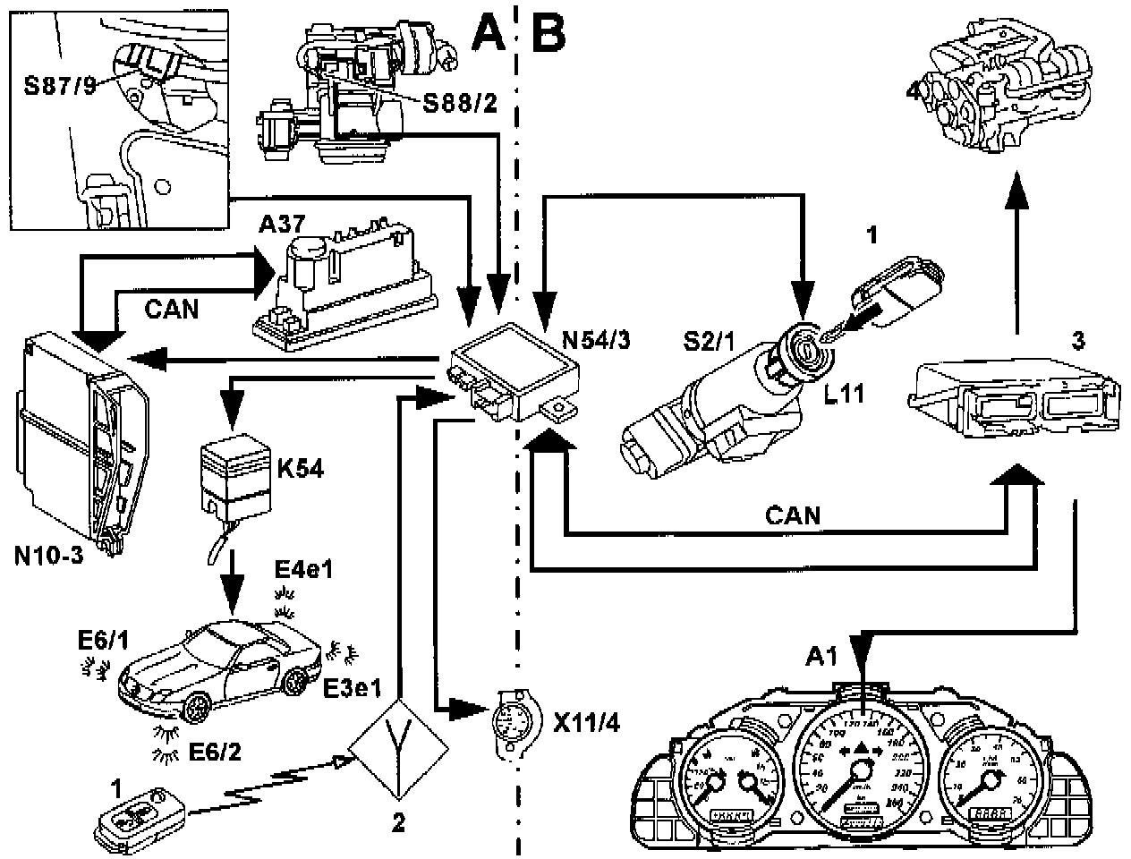 B Drive authorization stage (DAS) (release of motor management via transponder)