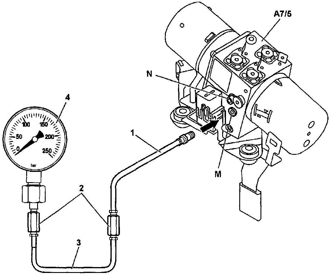 A. Connection of test equipment to hydraulic unit (Figure 3).