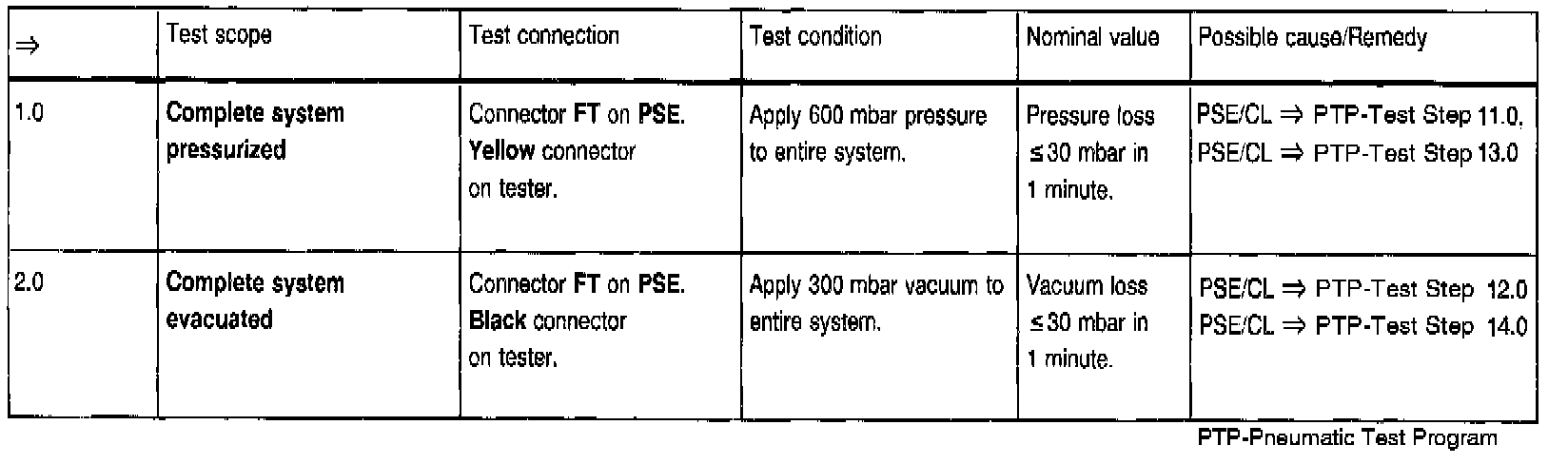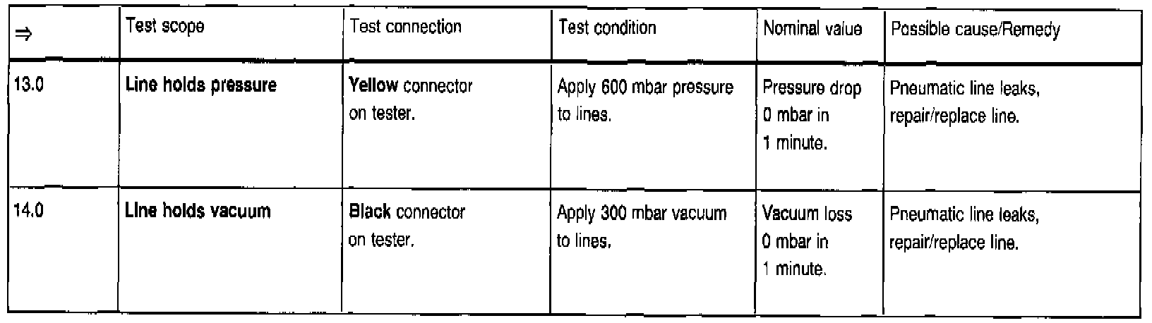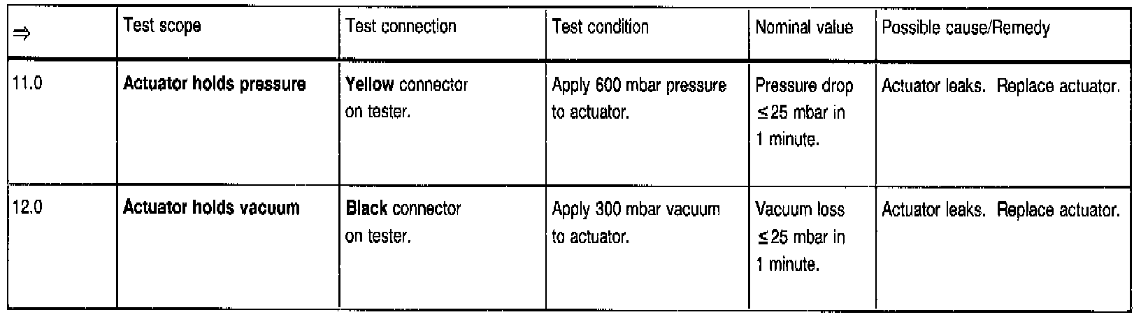Allowable leakage of actuators with lines at 600 mbar pressure of 300 mbar vacuum in 1 minute: