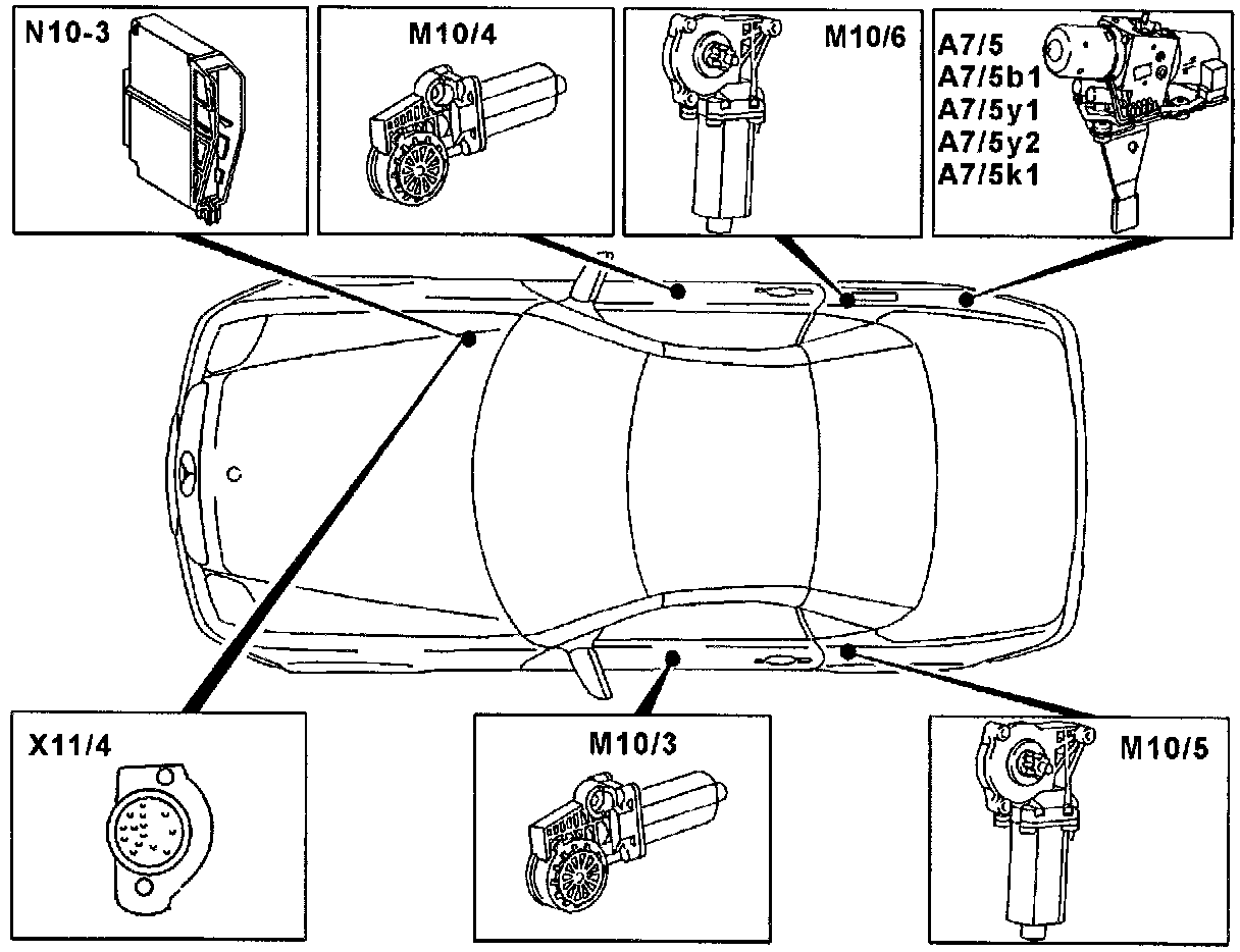 M10/3 Left front power window motor (voltage supply)