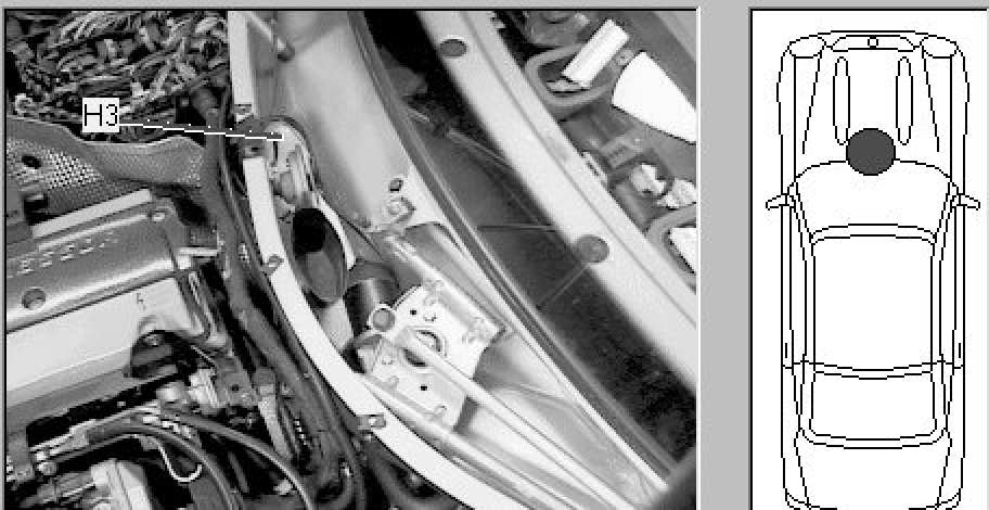 Rear center of engine compartment