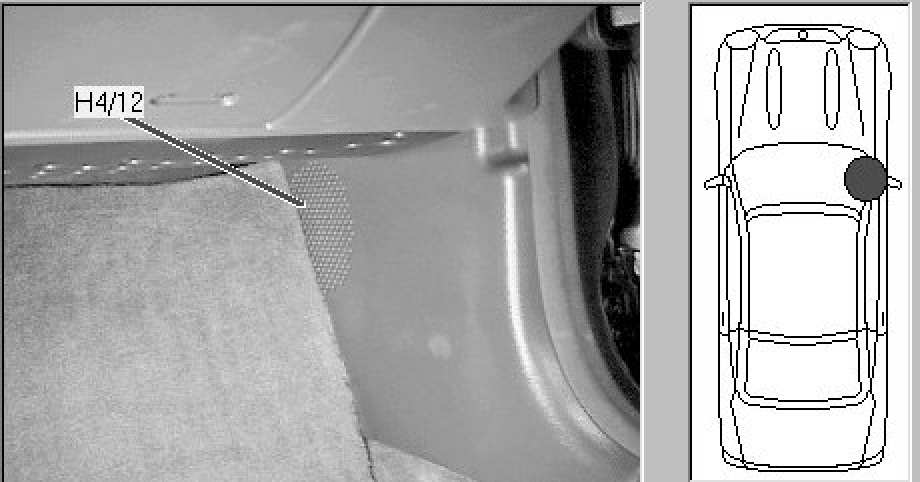 Behind passenger right kick panel