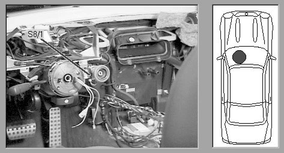 On left side of ignition switch