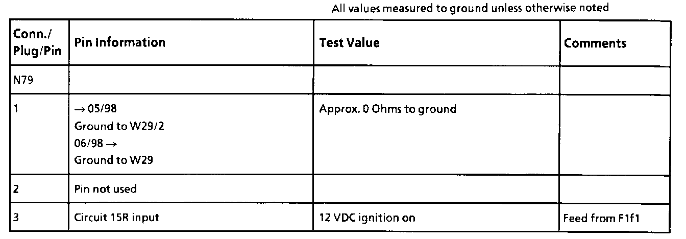Connector N - Pin 79 Through Pin 3: