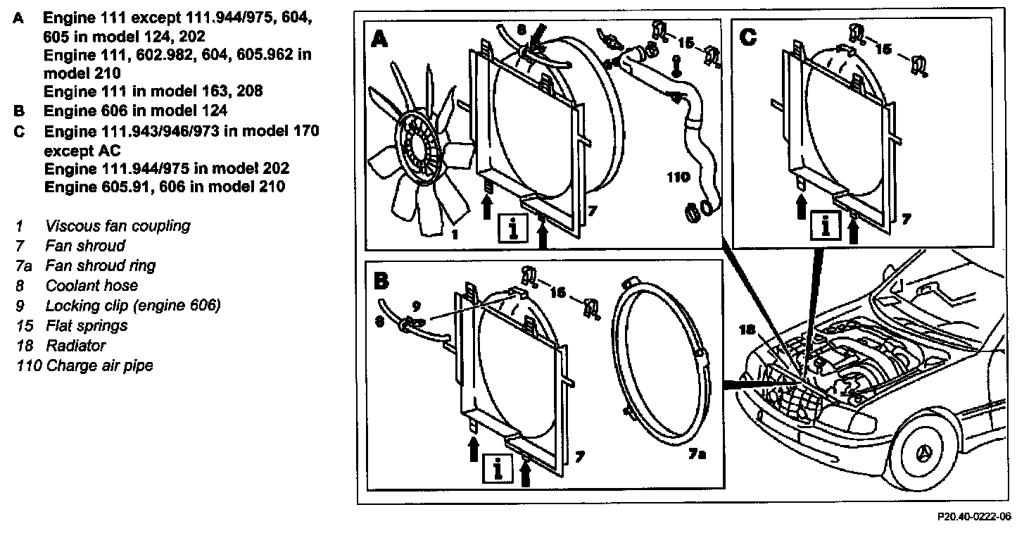 - On engine 604/605 in models 124, 202 together with viscous fan coupling