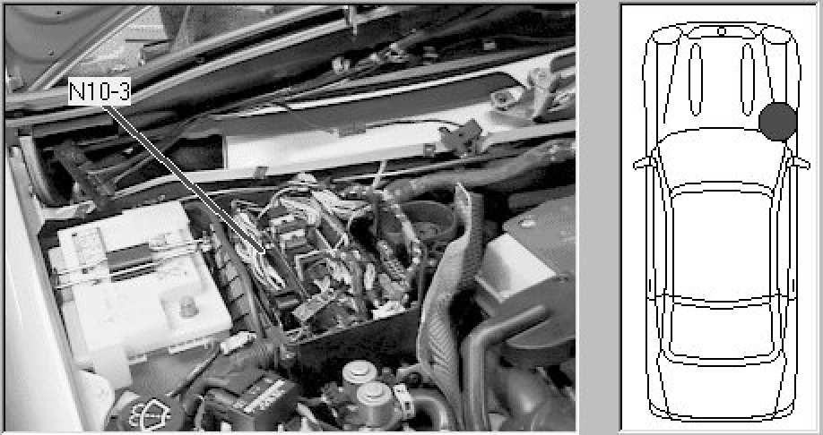 Right rear of engine compartment