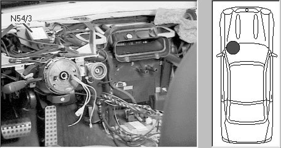 Behind instrument cluster, above steering column