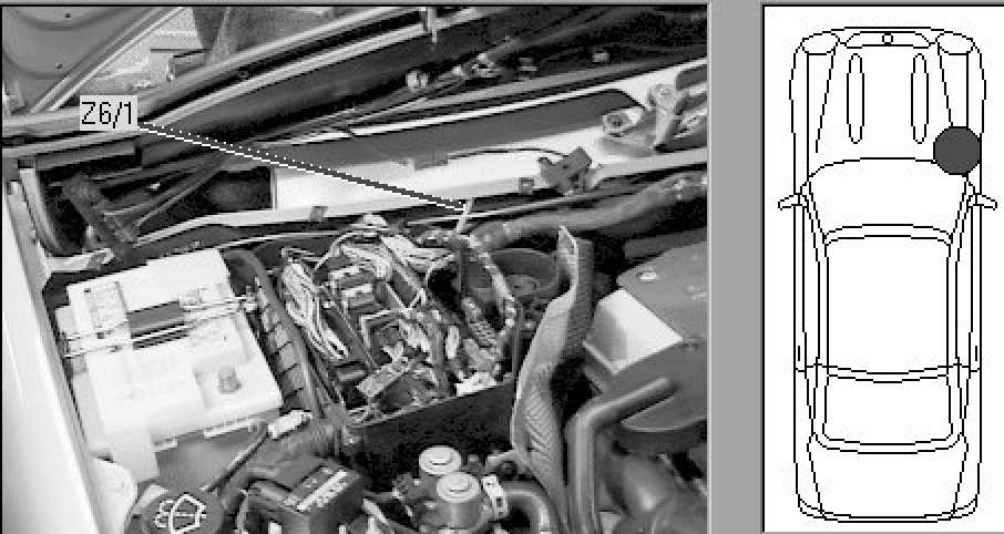 Right rear of engine compartment