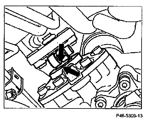 - The steering gear is in the center position when the separating joint of the steering coupling and the marking notch on the steering gear (arrows) are above each other. Offset the steering wheel by a maximum of one tooth, if necessary.
