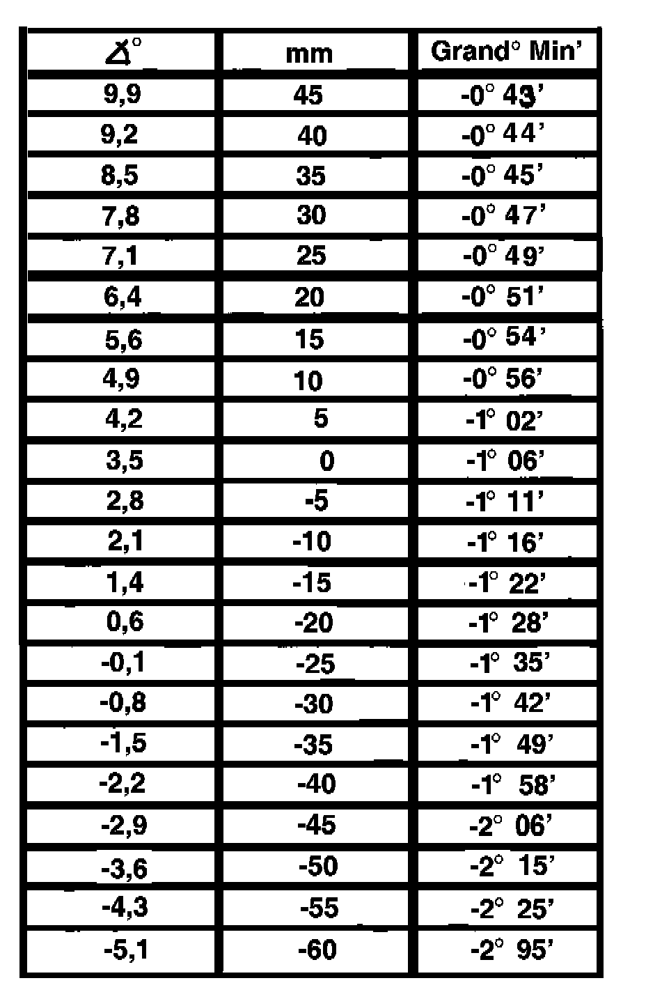 0 mm -0.4° -1°30' ±30'