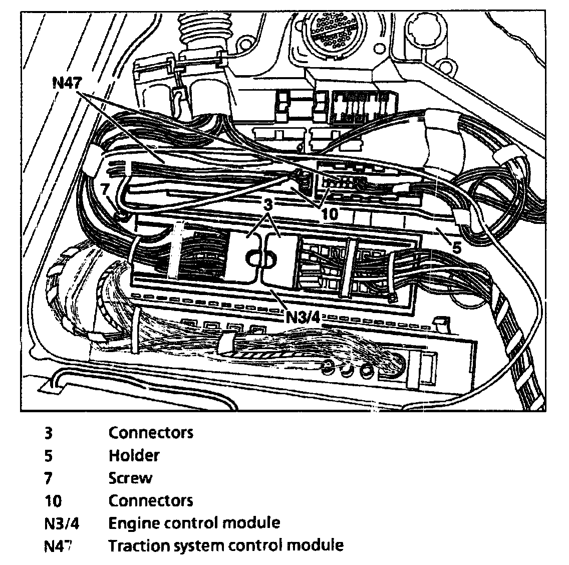 NOTE: The engine control module (N3/4) and traction system control module (N47) are mounted on one plate (5) and always have to be removed together.