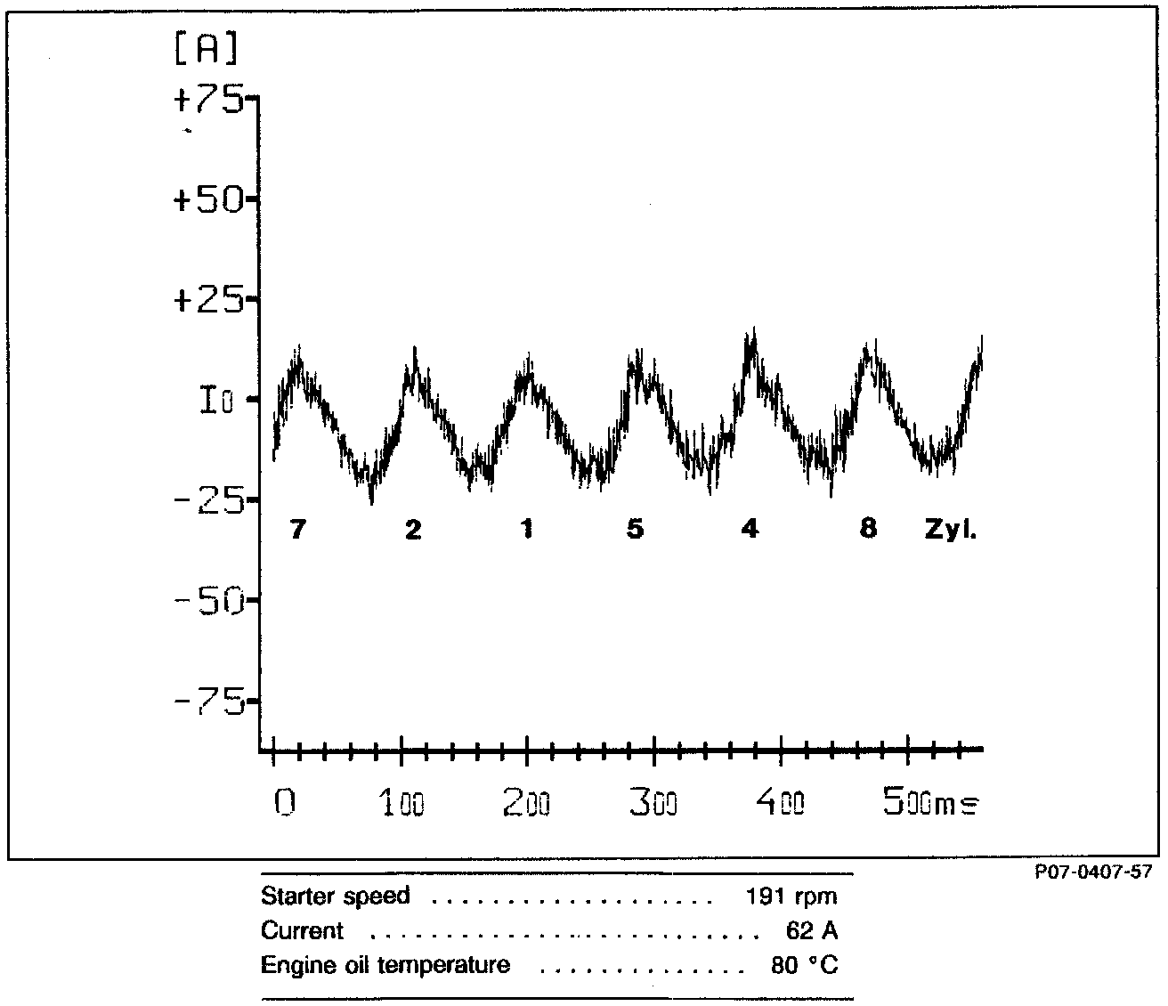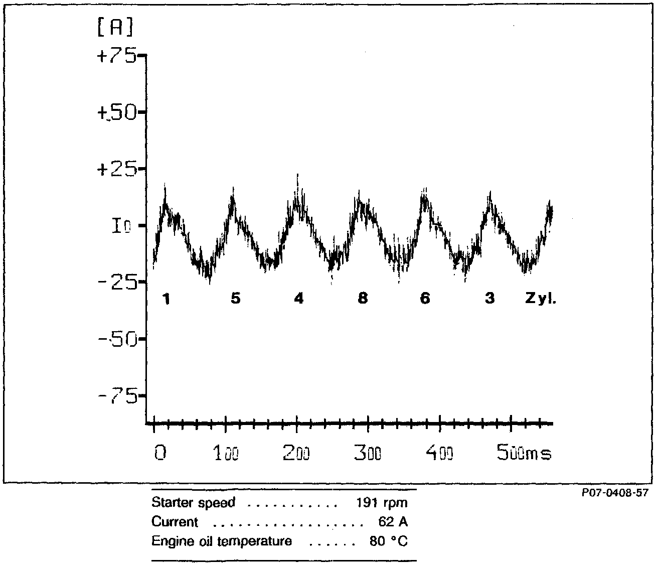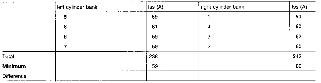 On 8-cylinder engines, the average current value between the cylinder banks is compared and the difference shown. This allows identification of engine timing failures.