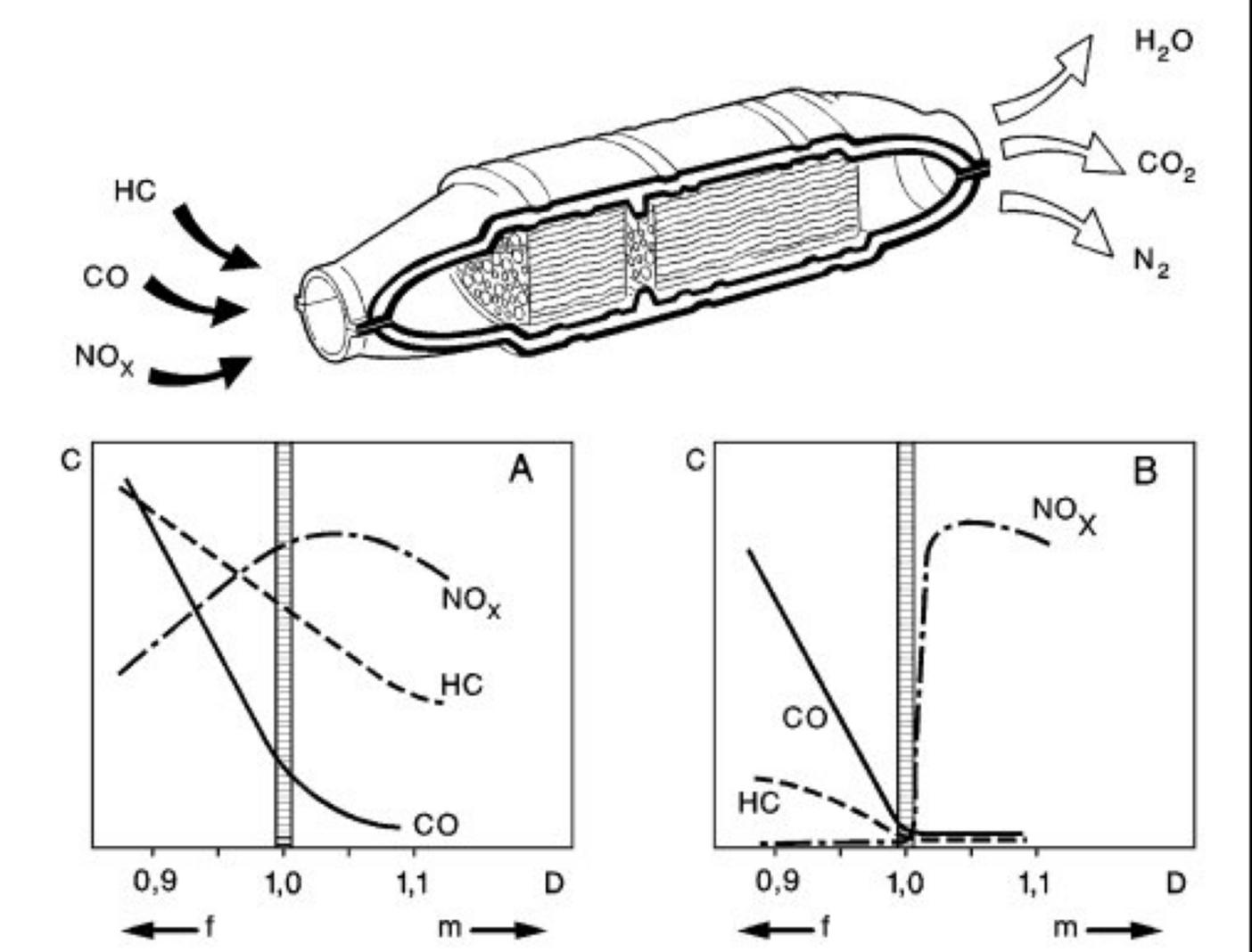 Note: In view of its property of simultaneously reducing three pollutant components, it is known as a three-way catalytic converter.