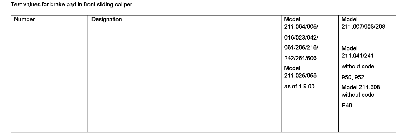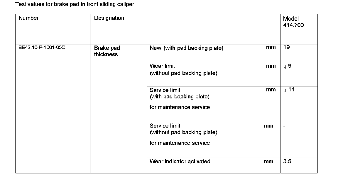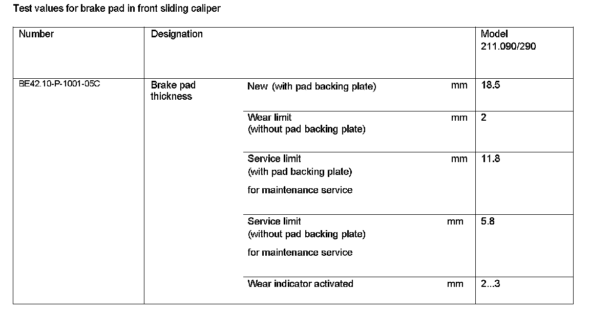BE42.10-P-1000-05C Test Values For Brake Pad In Front Sliding CaliperTest Values For Brake Pad In Front Sliding Caliper: