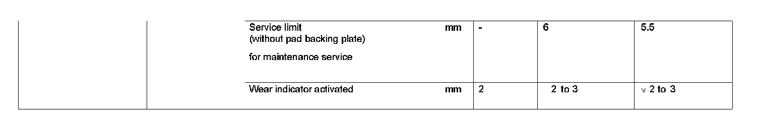 Test Values For Brake Pad In Front Sliding Caliper: