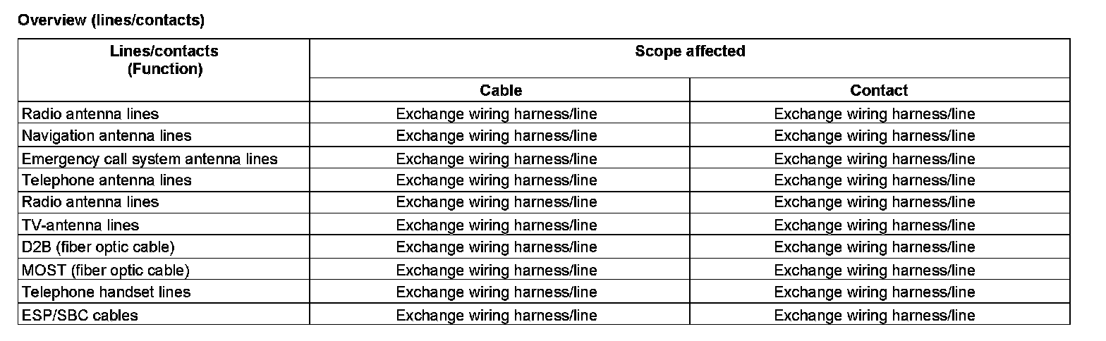 If more than ten lines per branch-off line are damaged, the wiring harness module must be replaced.