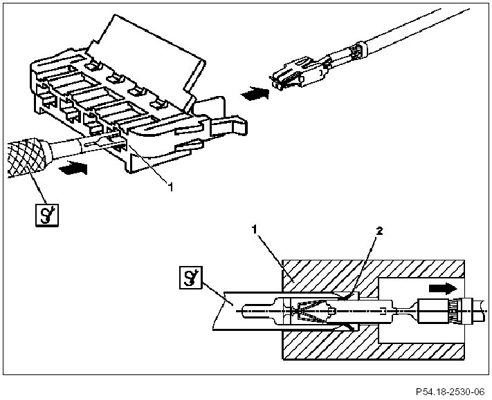 6 A slight tug on the corresponding cable will remove the female contact (1) from the coupling.