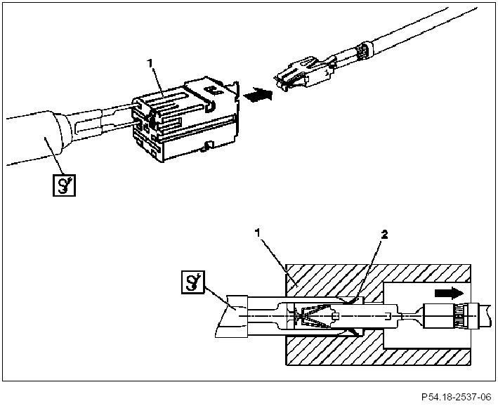 4 A slight tug on the corresponding cable will remove the female contact (1) from the coupling.