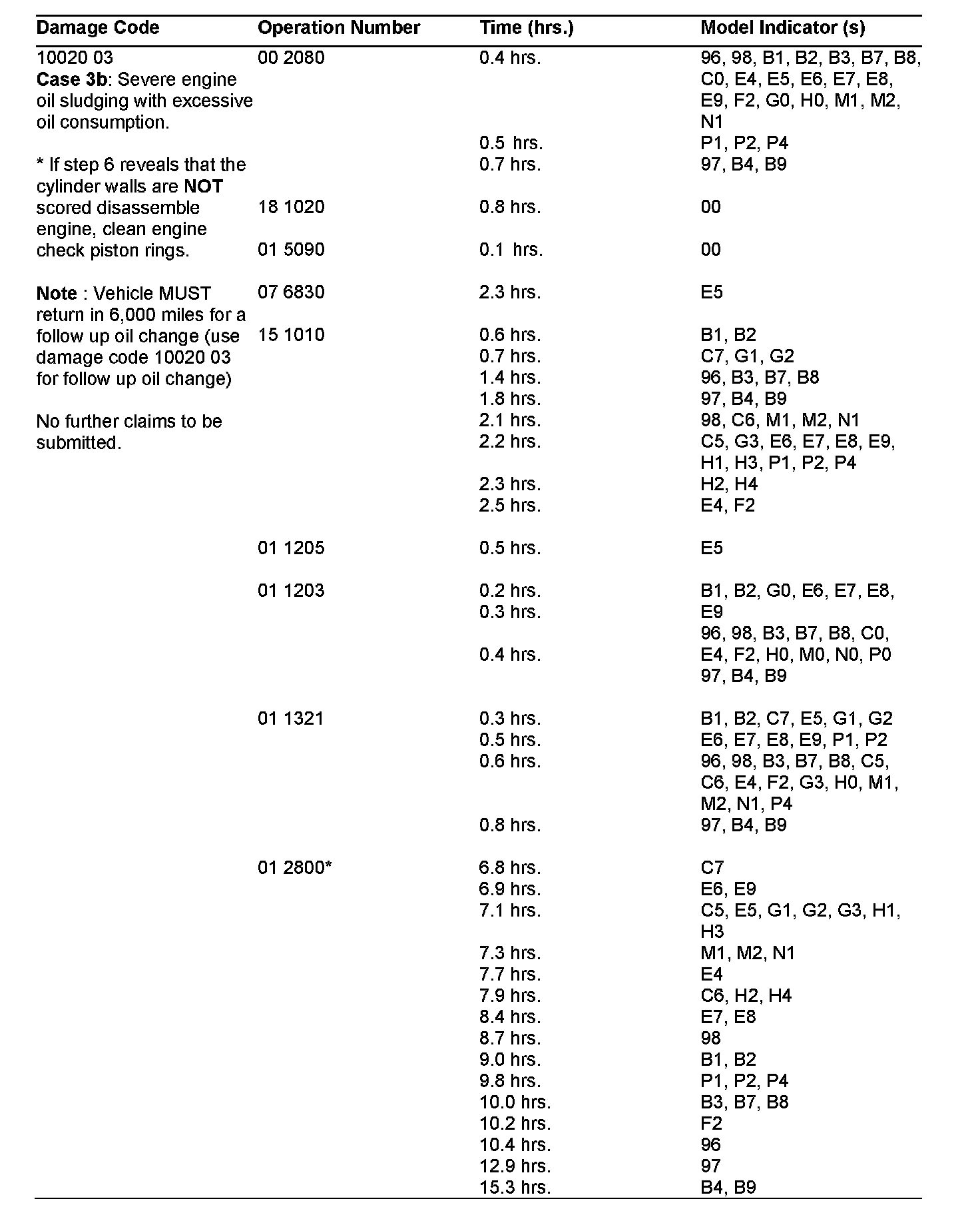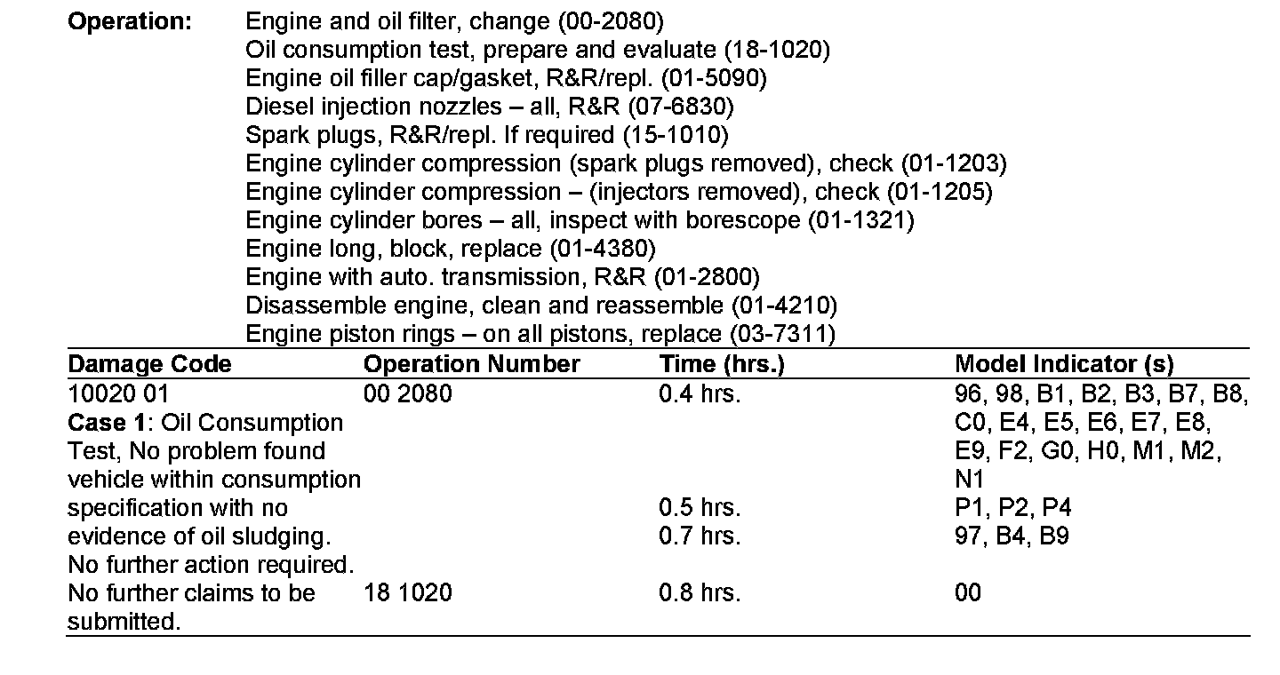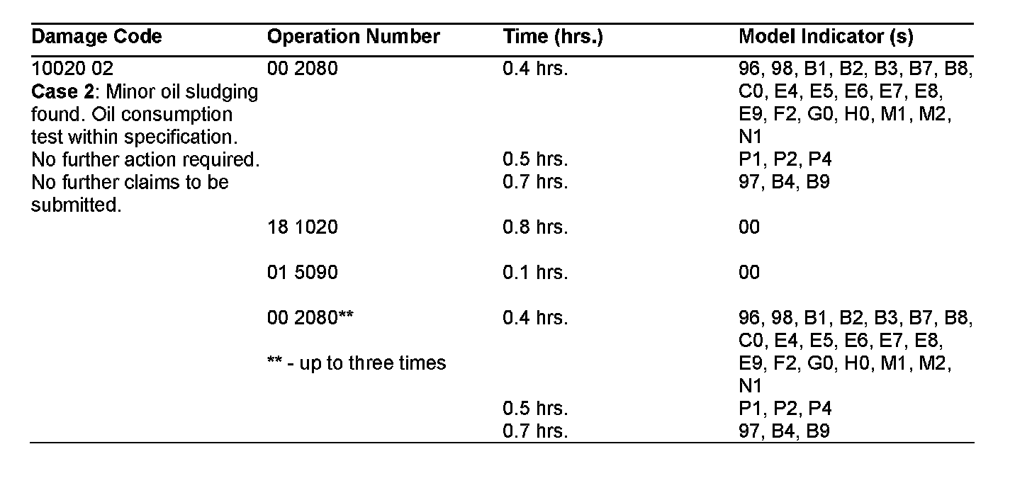 If an engine is replaced, solely due to excessive oil consumption and/or oil sludging, instead of the performance of the corrective measures as identified in S-B-18.00/16a and any subsequent updates, the engine will be debited back to the dealer.