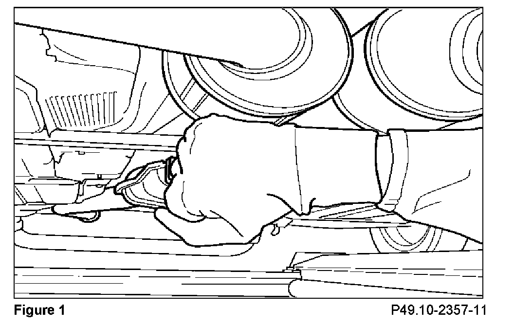 3. With engine off and vehicle raised up, perform "Tapping Test" (Figure 1) on entire exhaust system, including catalytic converters, exhaust pipes and mufflers with a closed fist - wearing safety gloves, trying to locate source of noise.