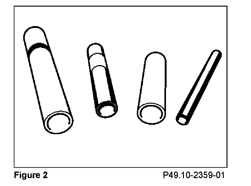 7. With engine running, perform listening test on the entire exhaust system (as necessary for each side of the exhaust system) using self made auxiliary pipes of approx. 24 inch length and 1 - 2 inch diameter, constructed of either aluminum, rubber or other suitable material (Figure 2).