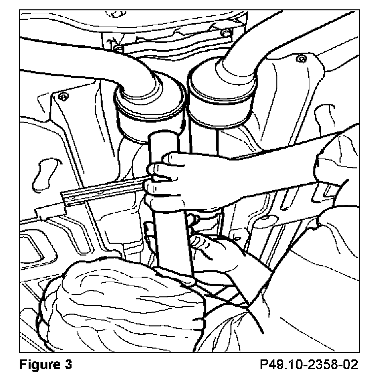 Perform listening test at idle first and then at varying engine speeds, moving the auxiliary pipe along the entire exhaust system at various distances approx. 1 - 4 inches, thus trying to localize the noise (Figure 3).