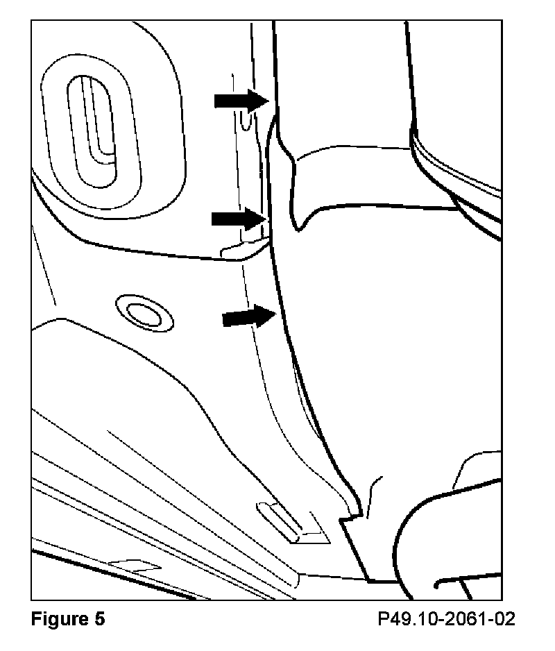 11. Check that the heat shields (arrows, Figure 4 shows incorrectly installed) are firmly and correctly (Figure 5 and 6 shown correctly seated) on the underbody.