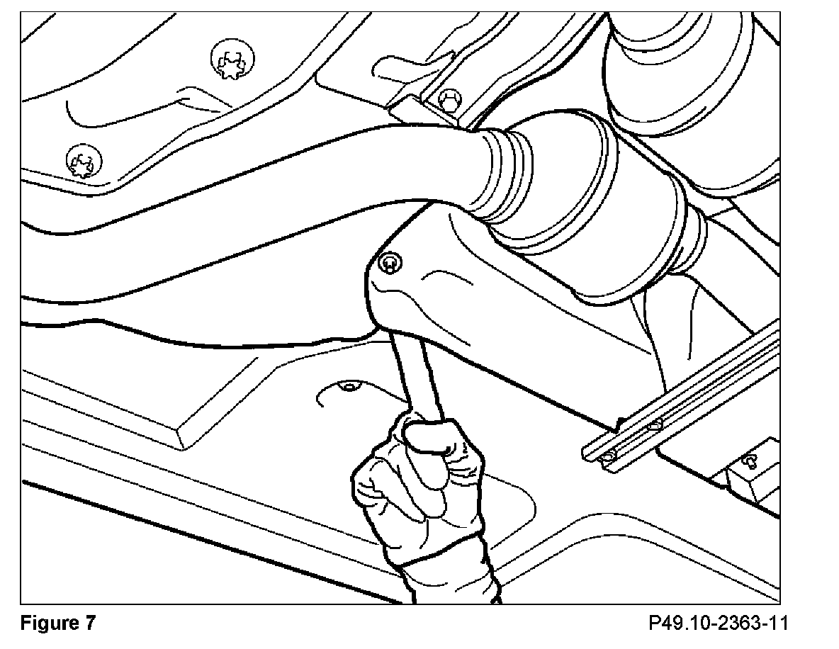 Use your finger to incite vibrations in the heat shields and to tap the exhaust system (Figure 7)