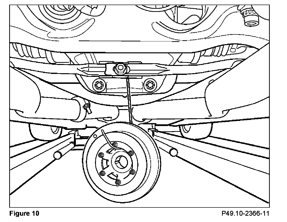 2. Hang any suitable weight (4lbs to 6lbs. e.g.: brake disc) from bracket of the rear exhaust system as shown in Figure 10. The aim here is to change the vibration response of the exhaust system.