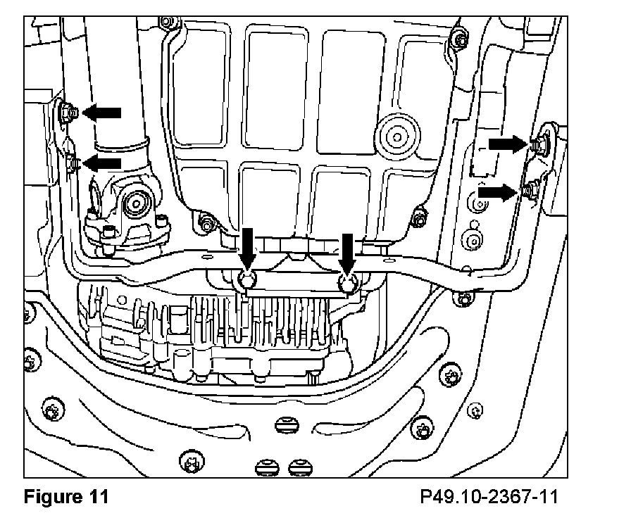 1. Unbolt the exhaust system bracket at the transmission end (arrows, Figure 11).