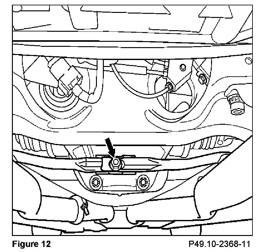 2. Unfasten rear cross strut (arrow, Figure 12) and unhook rubber exhaust mounts.