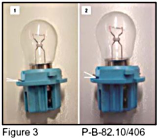 Model 170.449/465/466 - If you receive customer reports in the above model vehicles of the brake light(s) not functioning, excessive heat may have deformed the bulb socket in the rear lamps (Figures 1 and 2). Due to the deformation, the electrical path from the bulb socket contact to the "wiring track" on the bulb holder may be intermittently interrupted. It is not necessary to replace the rear lamp assembly. Replace only the bulb socket and bend up the contacts as shown by the white marks (Figure 3).