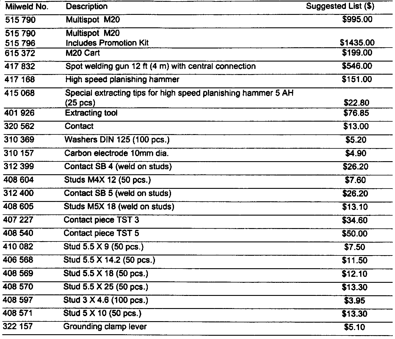 THE MULTISPOT M20 AND OPTIONAL ACCESSORIES CAN BE ORDERED VIA THE MBUSA STANDARD SERVICE EQUIPMENT PROGRAM (SEE CATALOG OR PHONE [Toll-Free] 1-888-458-4040).