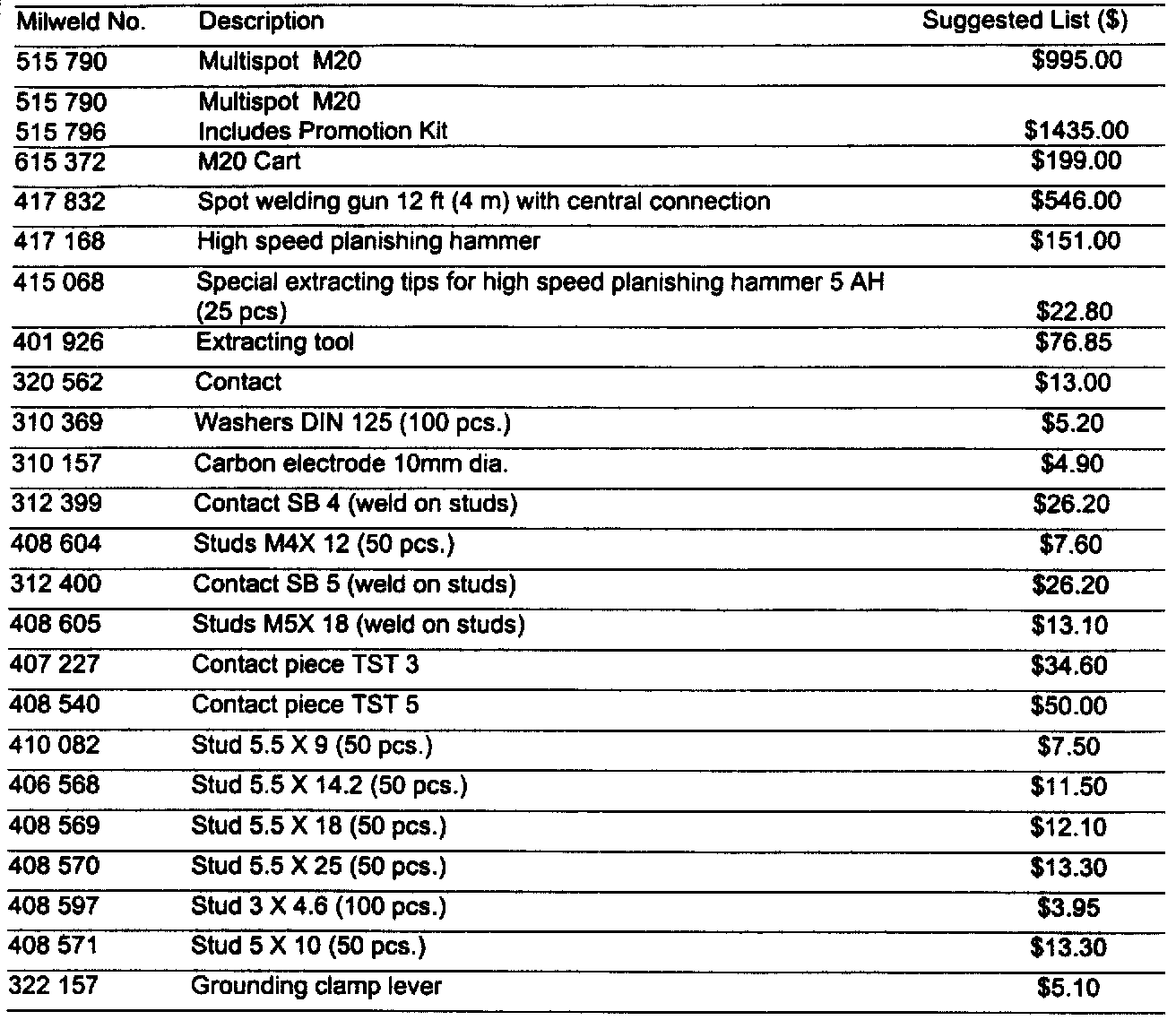 THE MULTISPOT M20 AND OPTIONAL ACCESSORIES CAN BE ORDERED VIA THE MBUSA STANDARD SERVICE EQUIPMENT PROGRAM (SEE CATALOG OR PHONE [Toll Free] 1-888-458-4040).