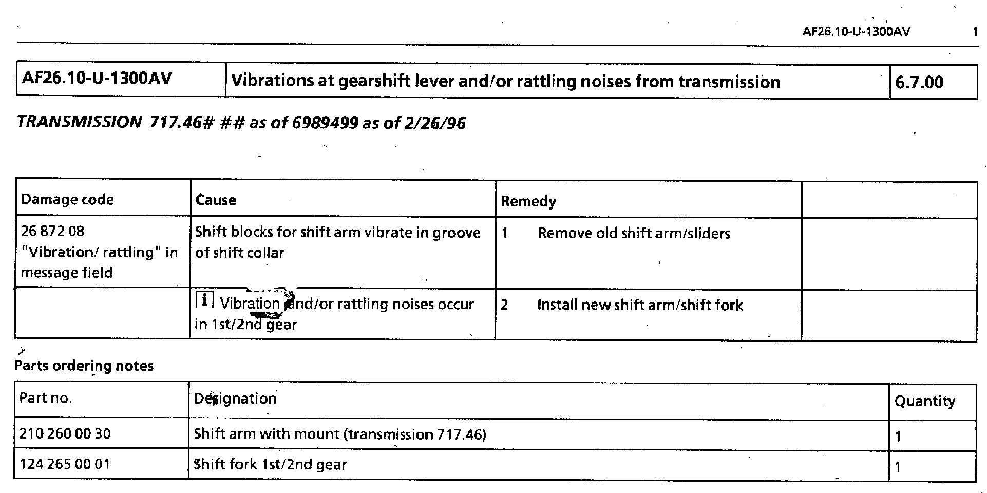 Vibrations at Gearshift Lever/Transmission Rattles