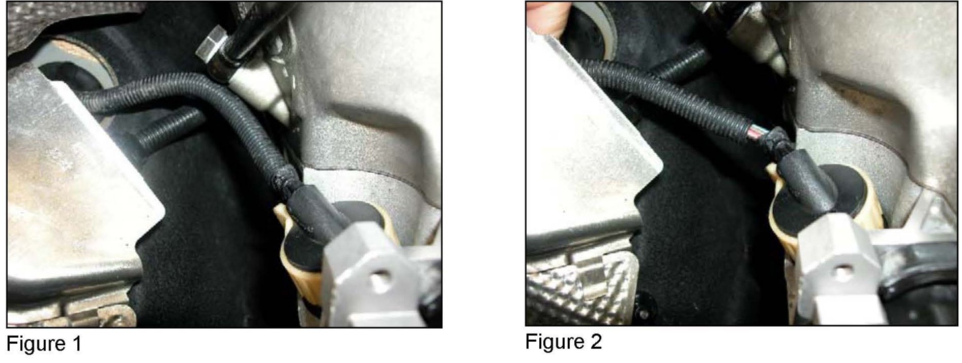 When connecting the wiring harness to the transmission, ensure that the harness is routed in a tension free path (Figure 1) and that no tension is applied to the electrical connector from the harness (Figure 2).