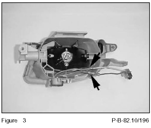9. Connect the new H-1 bulb socket to the fog lamp assembly. Connect the yellow wire to the gray wire, and the brown wire to the brown wire (Figure 3). Using the two cable connectors shown above (C, Figure 2) crimp the wires together as indicated above.