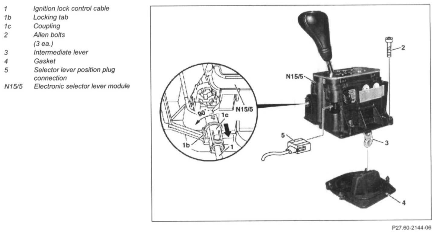 7 Remove electronic selector lever module (N15/5)
