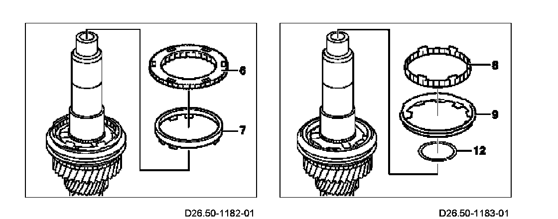 7 Remove cone ring (8) and synchronizer ring (9).