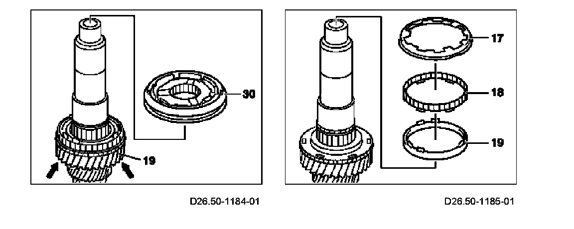 11 Remove synchronizer ring (17), cone ring (18) and friction ring (19).