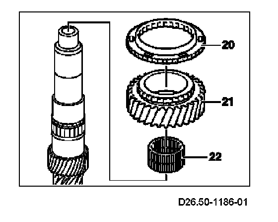 13 Remove 4th gear needle roller bearing (22).
