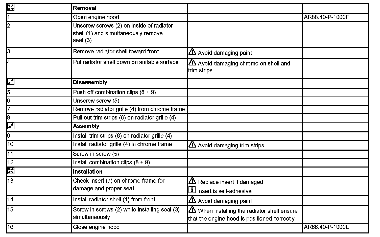 AR88.40-P-4000E Removing, Disassembling, Assembling And Installing Radiator Shell