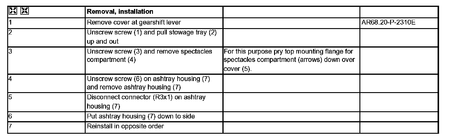 AR68.20-P-2400E Removing And Installing Ashtray Housing At Front Of Center Console