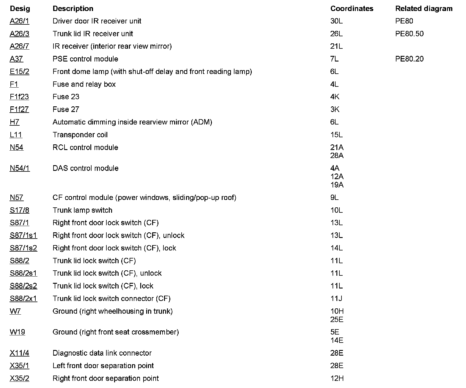 Component Description/Coordinates, A26/1 To X35/2: