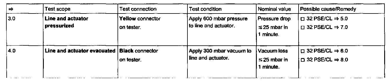 Allowable leakage of actuators with lines at 600 mbar pressure of 300 mbar vacuum in 1 minute: Permissible deviation <= 25mbar
