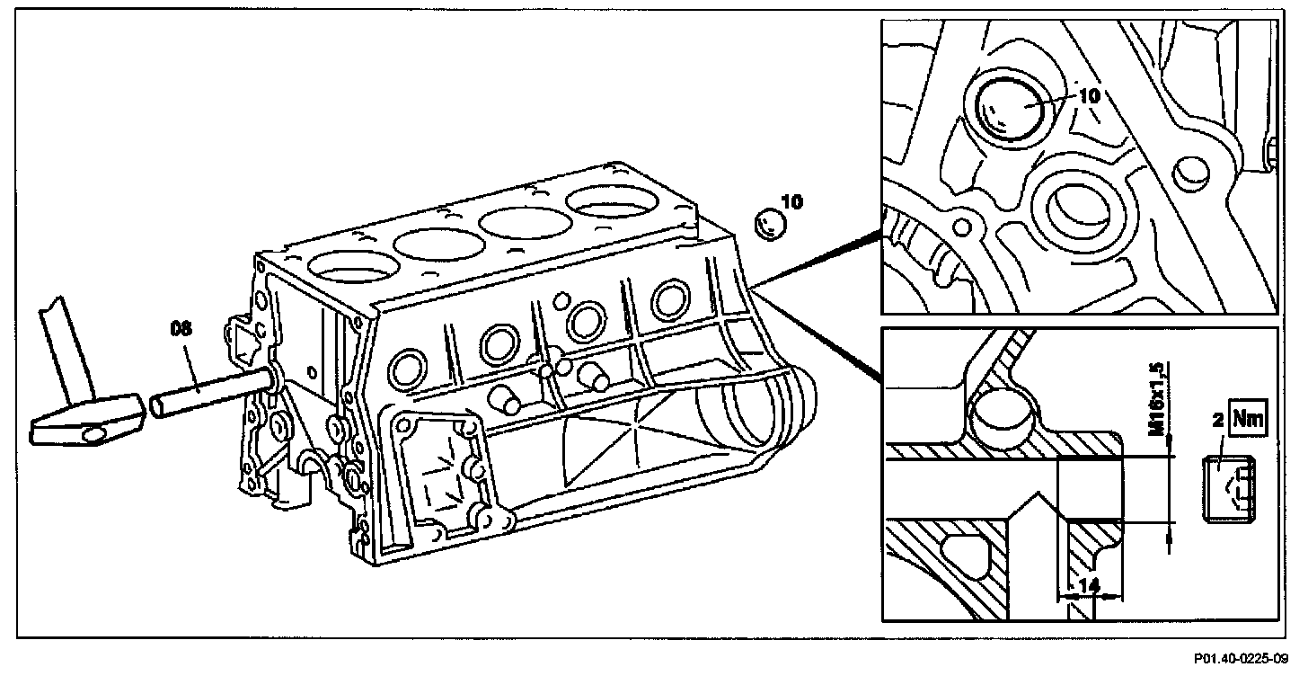 - Knock steel ball (10) out of the crankcase from the front with a round bar (08)