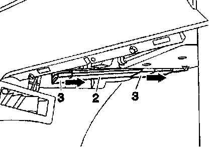 2. Take off cover (2). Push the two remaining clips (3) in the direction of arrow for this purpose.