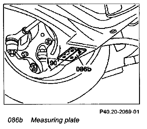 2 Install measuring plate (086b) in the recess in the lower wishbone