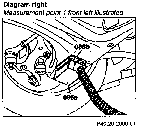 - Attach measurement sensor (086a) to left and right rear axle shaft (connecting cable pointing to center of vehicle) and store each measured value.