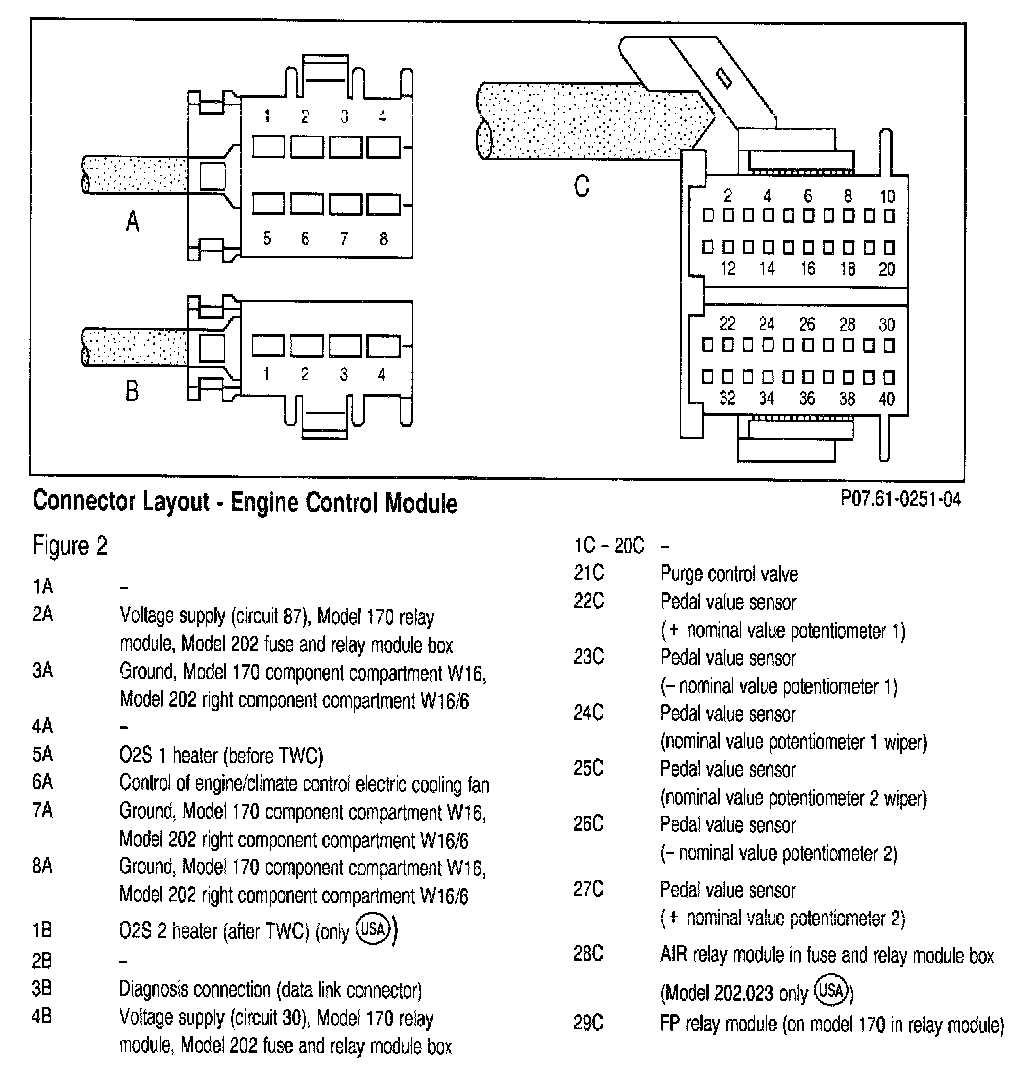 IMPORTANT: Connector with red marking is not required at this time since the engine control module has presently no function installed for it.
